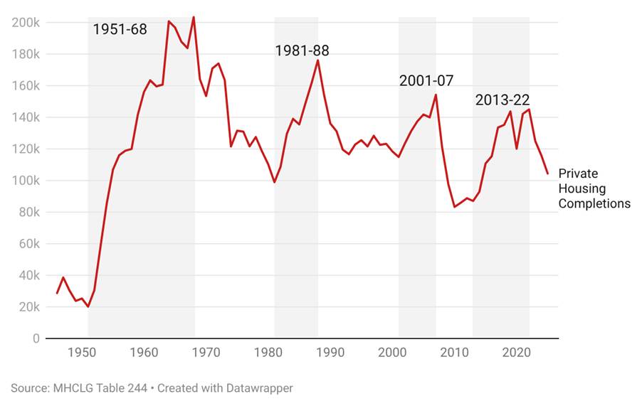 Ratcheting down: Private housing completions in England since 1946